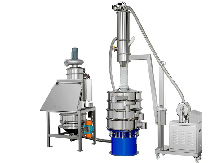 無(wú)塵投料站適用于制藥、化工、食品、電池材料等行業(yè)大、中、小袋物料的拆包、投放、篩分和卸料。拆包時(shí)由于集塵風(fēng)機(jī)的作用,可以避免物料粉塵到處飛揚(yáng)。當(dāng)物料解袋并倒入下一道工序時(shí),只需人工直接拆包投入到該系統(tǒng),物料通過(guò)振動(dòng)篩,可將大塊物料和異物攔截,從而保證符合要求的顆粒排出。