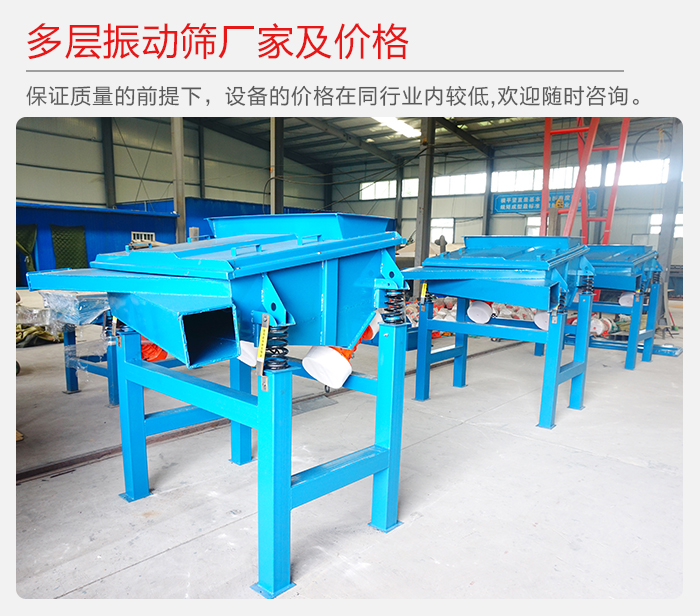 大漢建立以來,有自己大型的礦山設備生產廠房,完全可以自己生產自己銷售設備,多層振動篩在保證質量的前提下,設備的價格在同行業內較低,因為我們屬于廠家直銷型的企業,沒有中間商,多層振動篩價格便宜,歡迎用戶隨時來咨詢。
