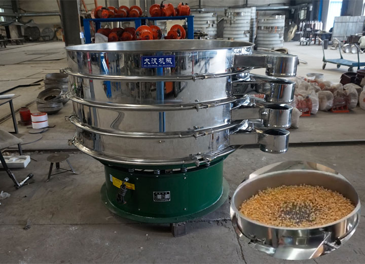 速凍玉米振動篩在去除玉米粒中大、中、小雜物時,一般采用3層4出口的設置。第三層采用2mm圓孔去除細小雜質,滿足包裝要求。